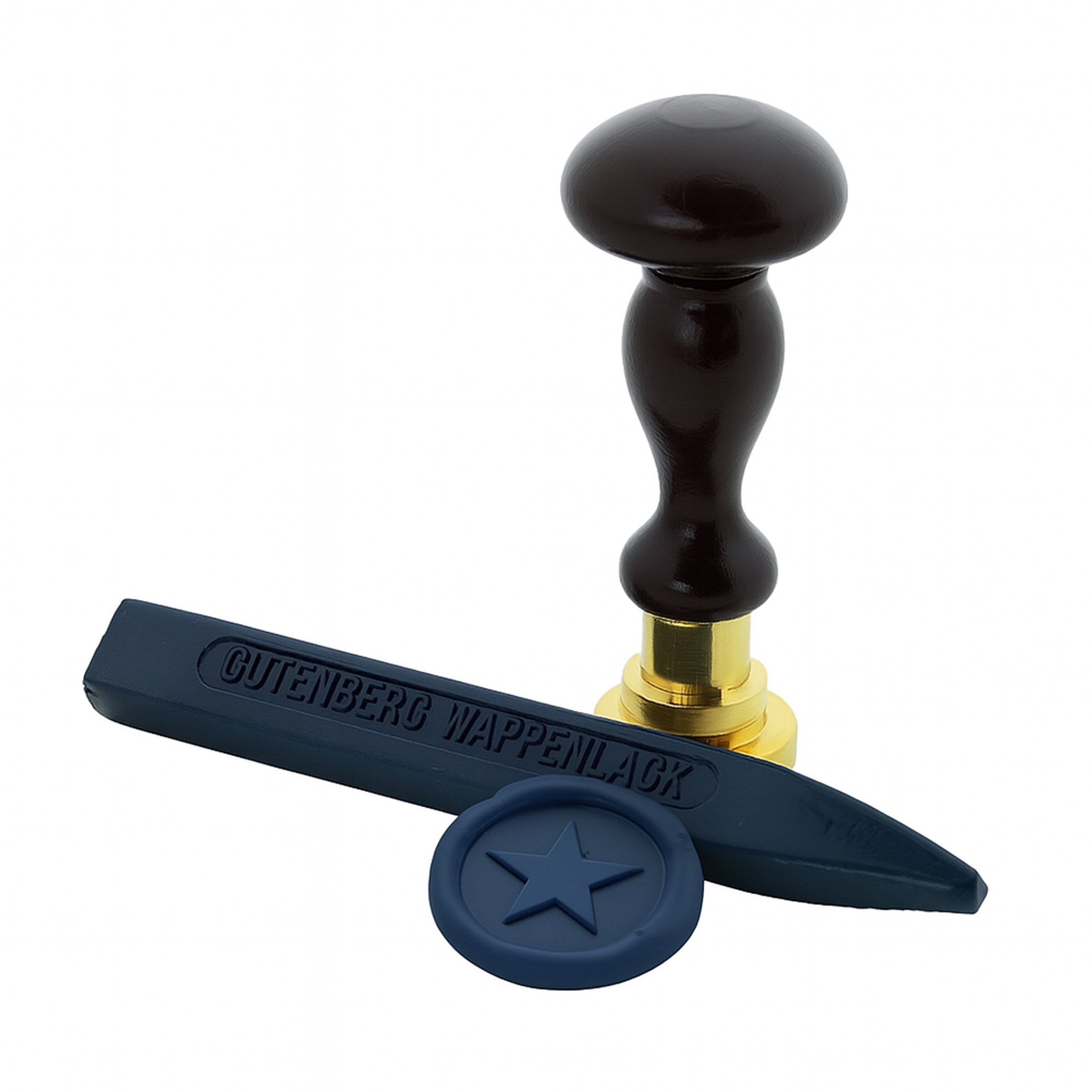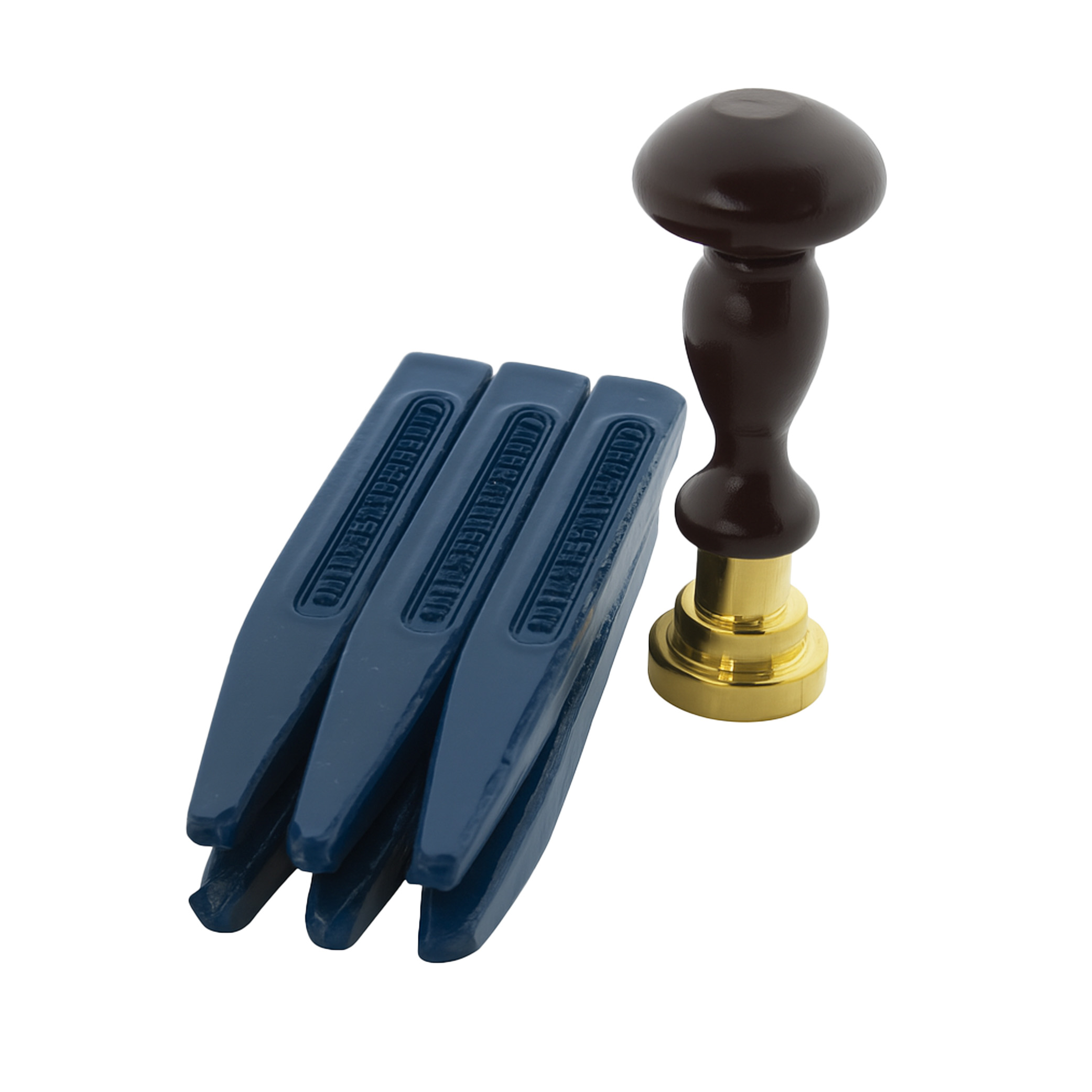 Deze zegellak, kleur donkerblauw, wordt o.a. gebruikt voor hobby doeleinden. Bedrijven en instellingen gebruiken deze lak ook voor het “bezegelen” van diploma’s, menu’s, huwelijkskaarten e.d. De lakstaven zijn geschikt om mee te druppelen d.m.v. een vlammetje eronder te houden (voorkom roetvorming) en om te gieten. In dat laatste geval kan je wat brokjes lak in een lepel verwarmen boven een vlammetje en dan op het werk gieten waarin dan de lakstempel gedrukt kan worden.