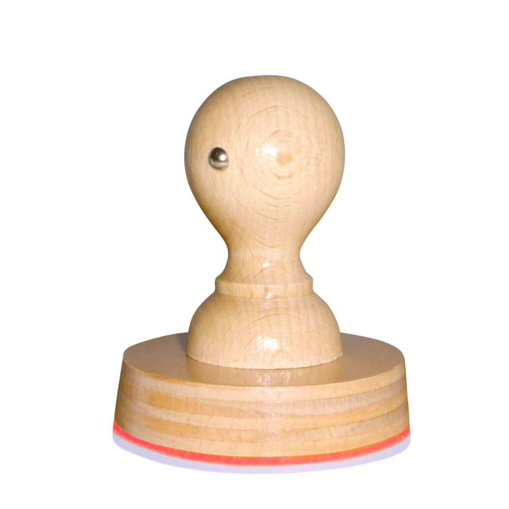 Ronde handstempel met montuur van beukenhout